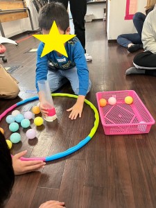 1個ずつ入れる方や5個を上手にキャッチをして制限時間内に全部カゴに移すことができた方もみえました(^:^)