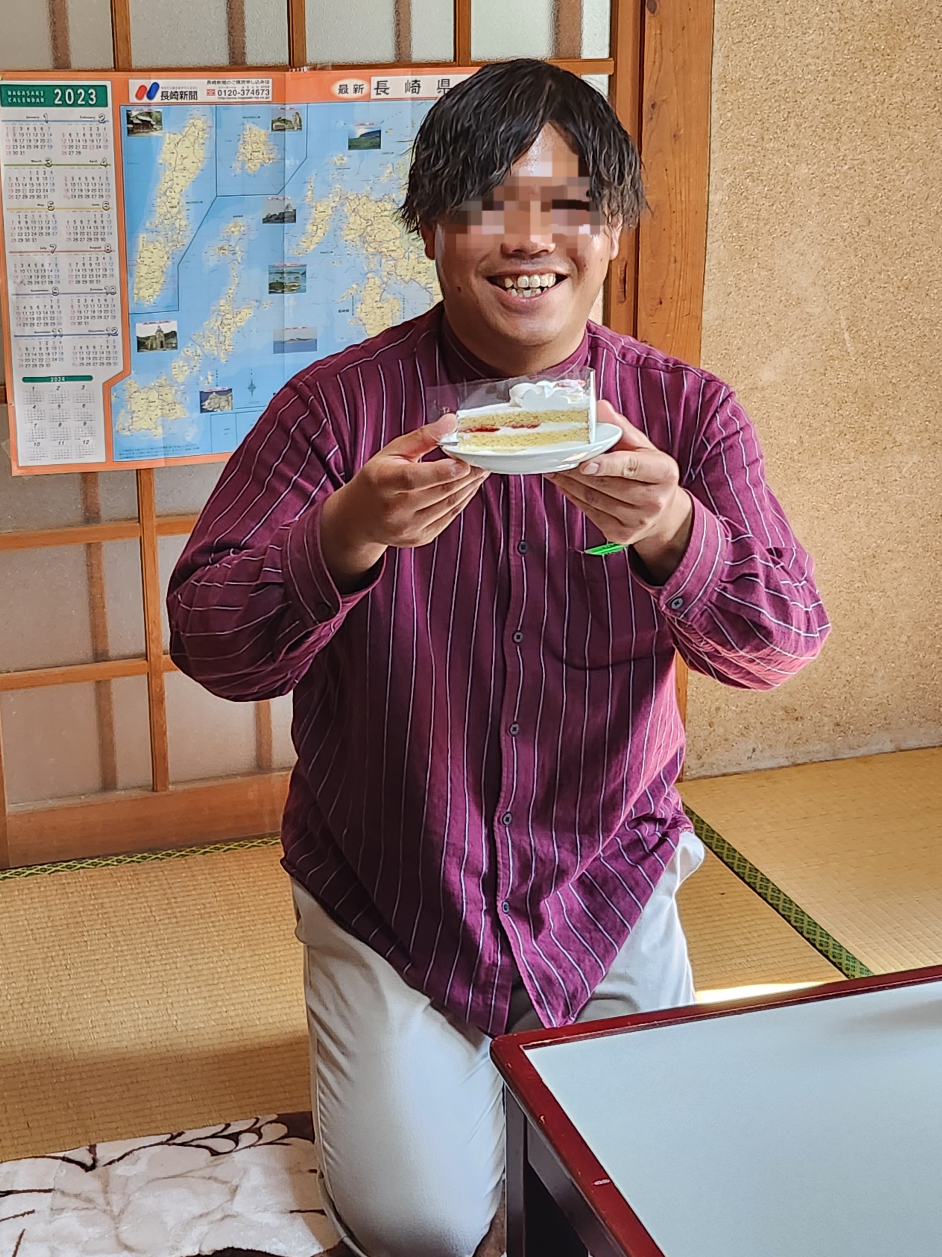 ホーム > 上五島グループホームほっと家 > 5年目を迎えました(*^^*) 2023/11/13 2024/09/12 漁協へ勤めて5年目を迎え、今年も就労契約更新して頂くこととなり、 本人の思いを一言 『更新して頂き嬉しいです。また来年に向けて1年頑張ります』とのことです。 ささやかに、更新祝いを行いました🌸 更新出来た事の安心感と喜びを、 満面の笑みで喜ばれていました👏👏👏 - 上五島グループホームほっと家