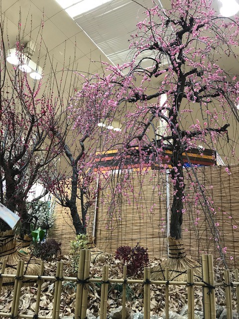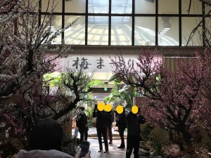 桃色や少し白色が強い梅の木が沢山あり室内なのですが園内を散策する様に見る事が出来ました。ご利用者様も梅の木を見て回り、その後は本当の公園内を散策しています。その後は昼食を取って、満足な様子で1日を過ごしました。