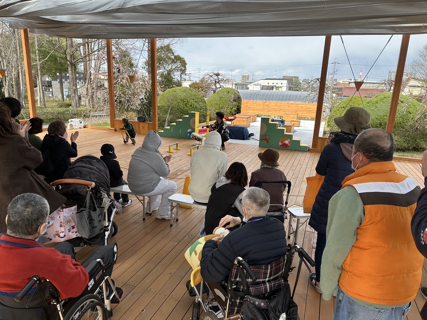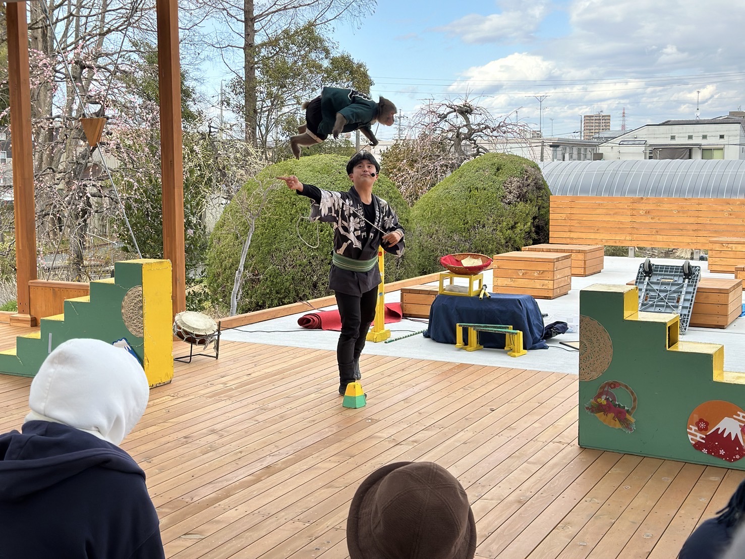 竹馬を乗ったり逆立ちしたりジャンプしたり、寒さを忘れてしまう芸を見せていただきました。