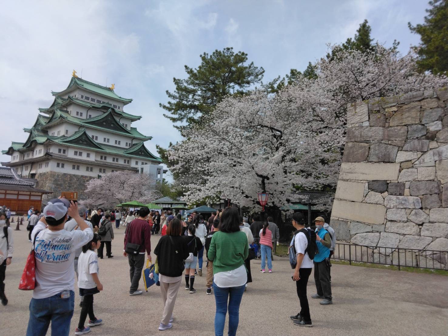 お昼を食べて、午後からは名古屋城へ花見に行きました。こちらは外国の方も多くたくさんの見物客でした。
