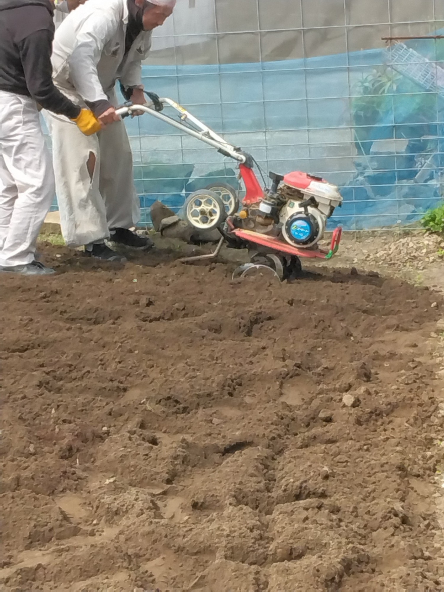 去年唐辛子作成した場所に花畑作成🌻する事になりました。まずは土作り(^^)耕運機の指導をしてもらいました。