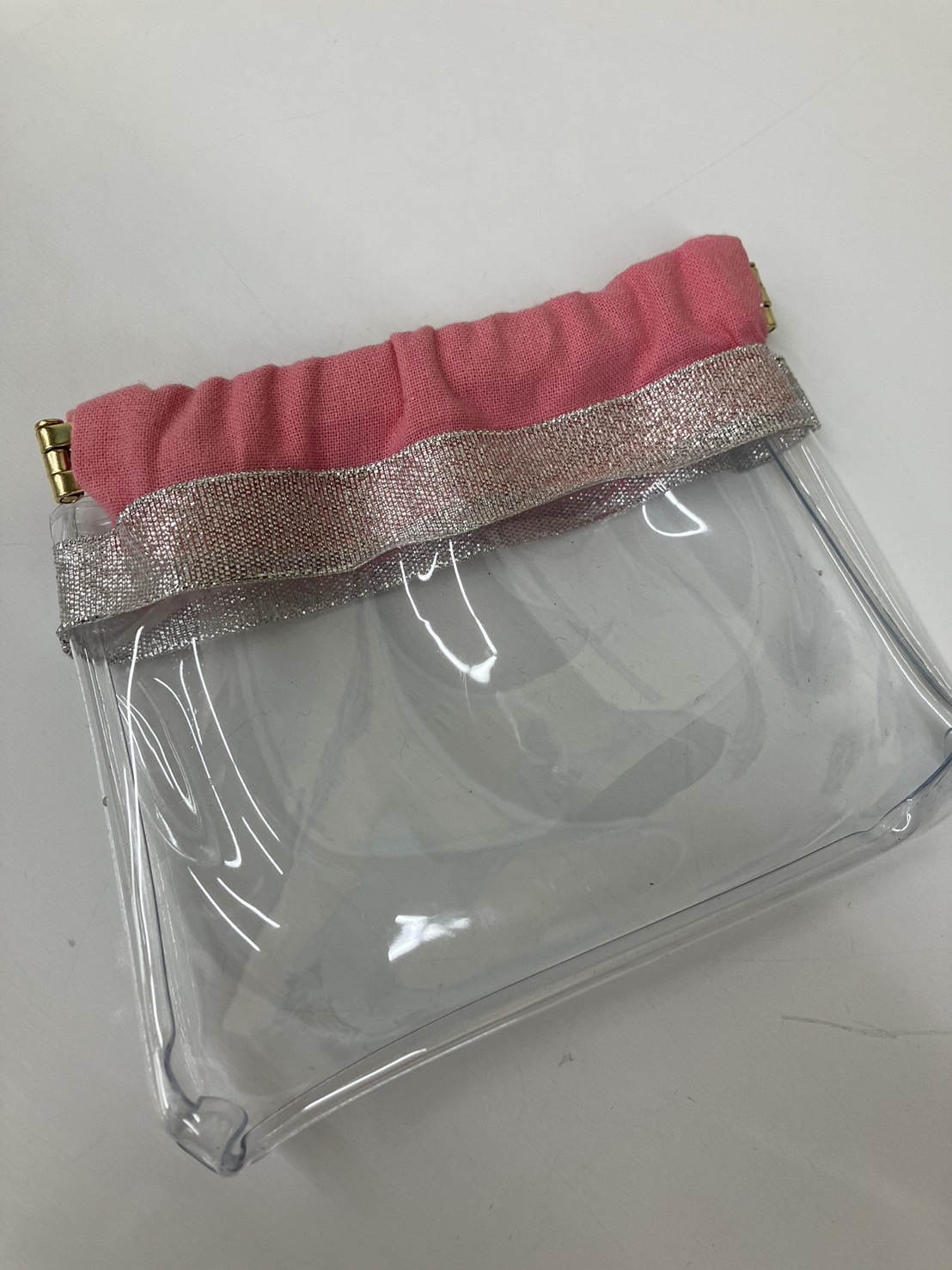 今年は、リボンと布をクリアケースに貼り合わせ、バネ口ポーチを作りました!