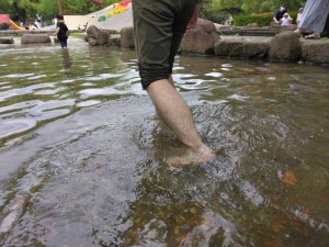 昼食後はブランコに乗りたいと鶴舞公園へ行きました。ちょうど小さい子がブランコを使っていたので水場に足を入れてみる?と聞くとやりたいと話されて涼んで時間を過ごしました。ブランコが空いたので思う存分、漕いでいました。満足した様子で近くのイオンへおやつを食べに行きました。