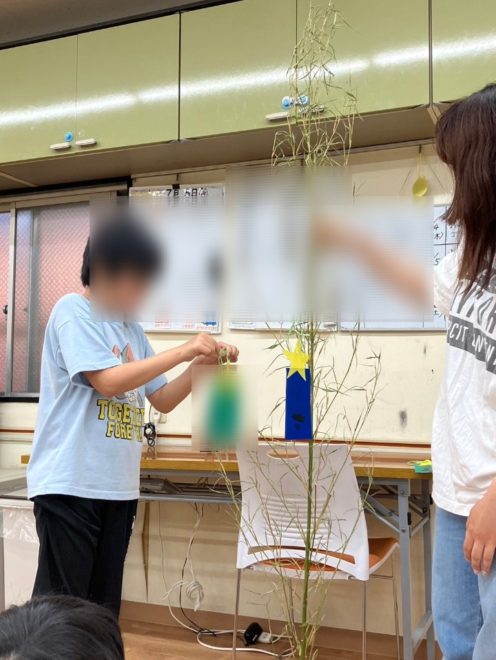 子どもたち、こだわりながら短冊を書き上げると、率先して笹に飾り付けに行っていました☆彡