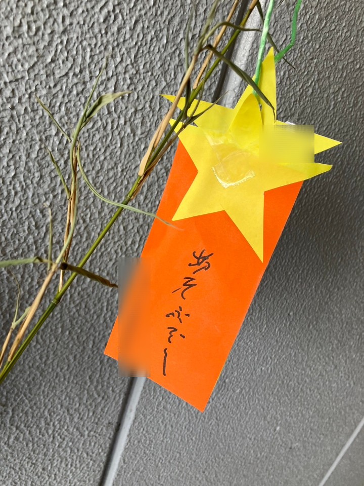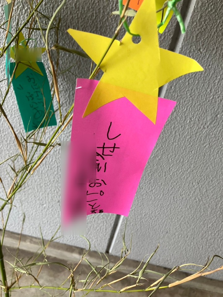 「願い事叶うといいな」とお願いしながら、スタッフと一緒に笹に飾っています!