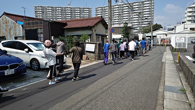 外に誘導したら一時的に裏の駐車場に集合する為、皆で移動します。
