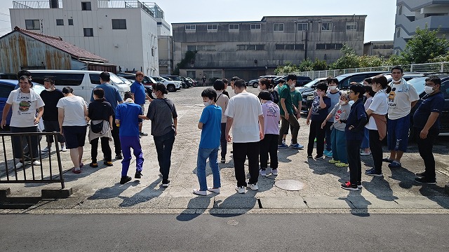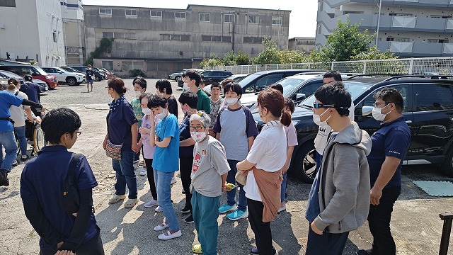 裏の駐車場で各グループごとに点呼を行い、本日の避難訓練は終了になりました。