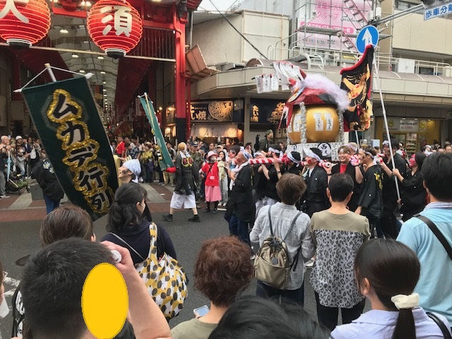 朝、夕と涼しくなり、外出も過ごしやすくなってきました。今回は名古屋まつりで大須に行ってきました。大須は賑わっていて、人、人、人で歩くのも大変でした。歩いていると目の前に大きなムカデの神輿が有り、ムカデ祭りをしていました。ご利用者様は興味深くお神輿のムカデを見て楽しまれていました。