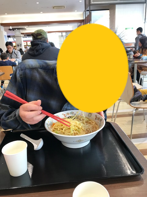 その後は場所を変えて食事。フードコートで店舗を見てメニューを見て悩んでラーメンを決めてくれました。自分で見て考えて決める事をしてくれています。ラーメンを美味しく完食。