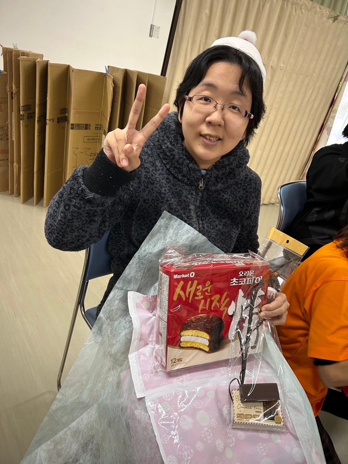 プレゼント交換やビンゴで貰ったプレゼントにピース✌