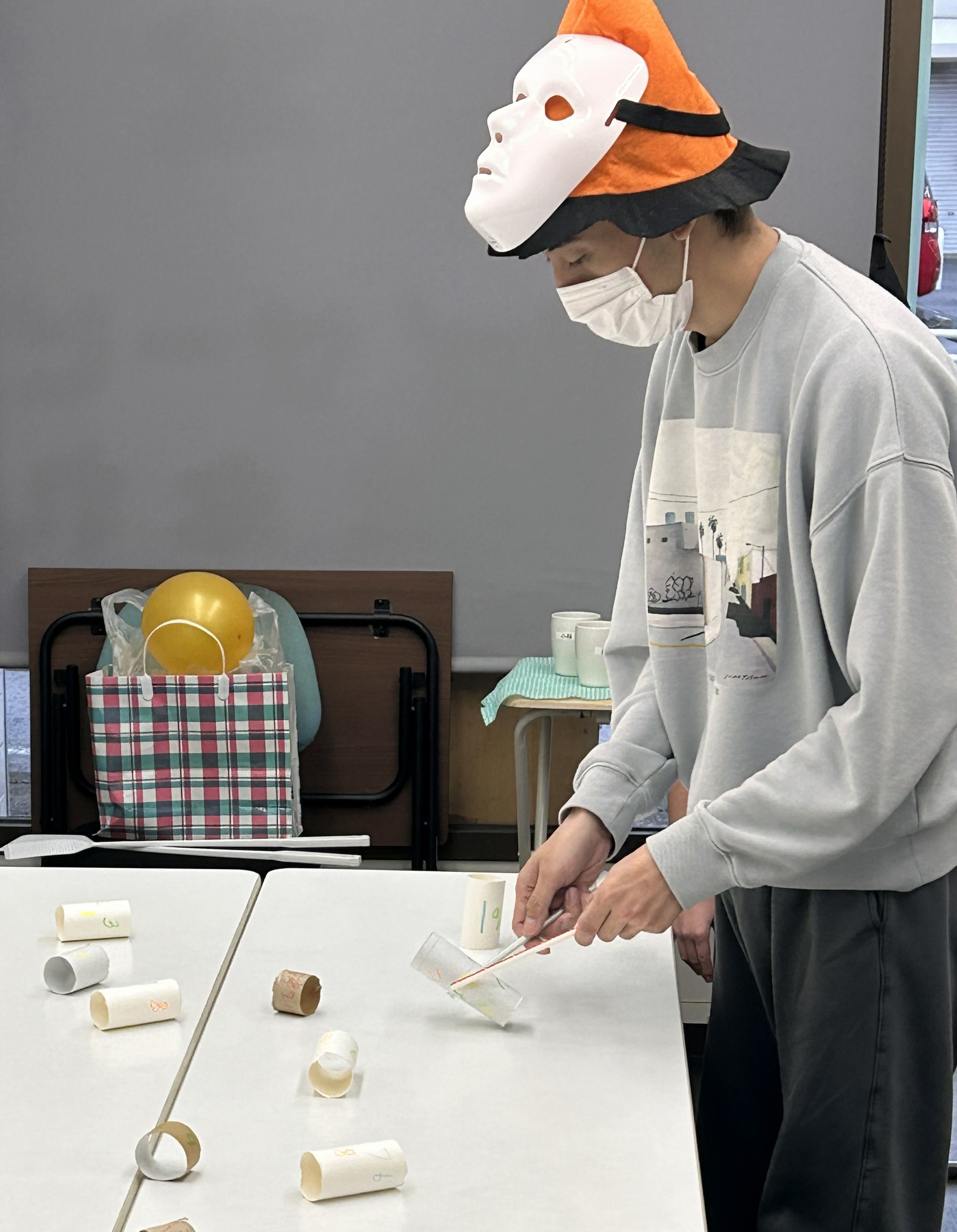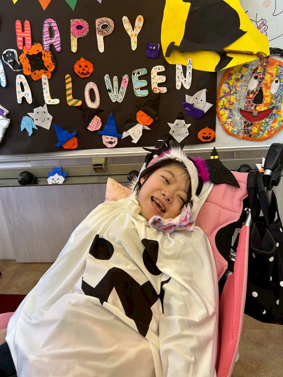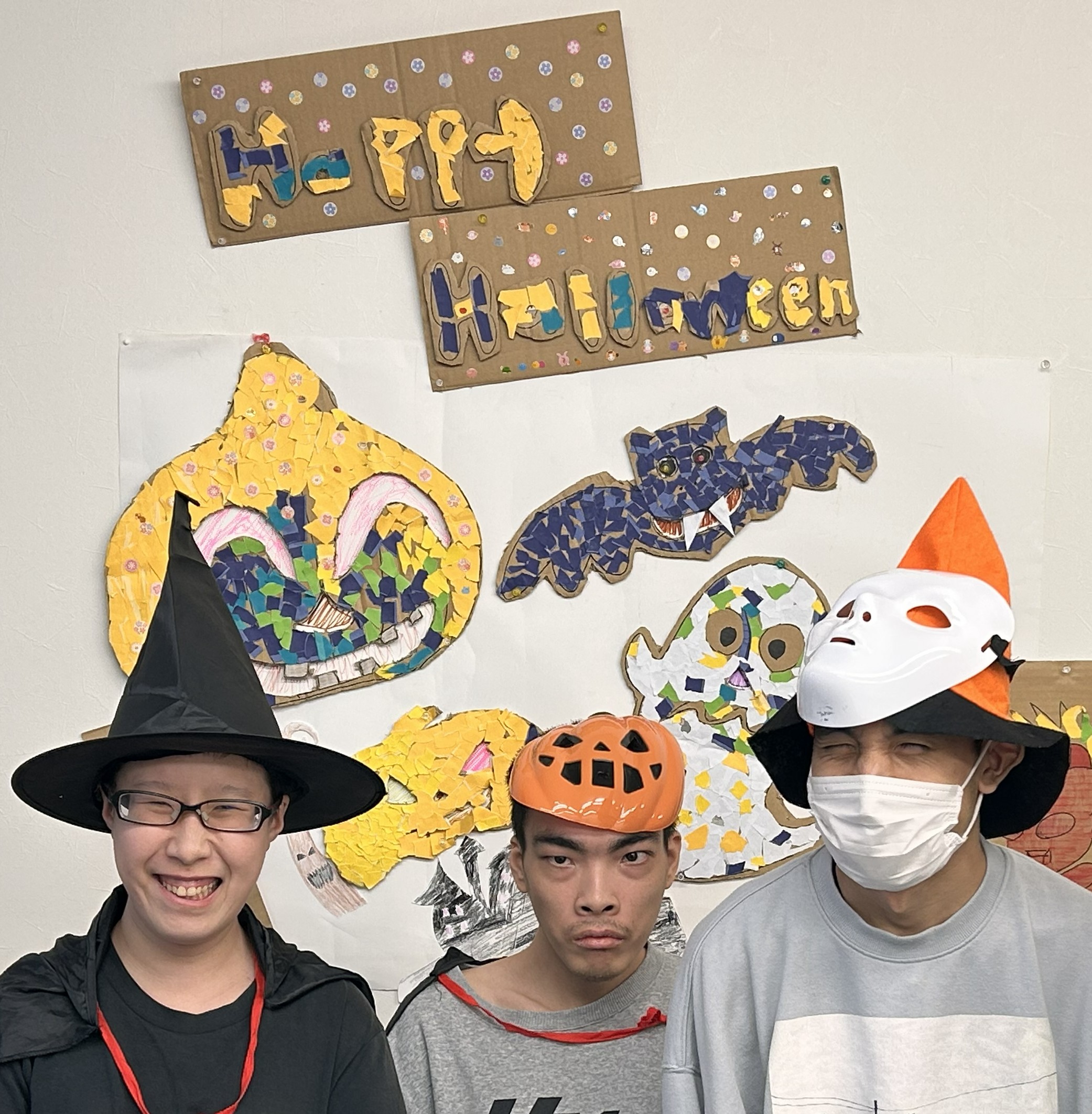仮装してゲームをして、ハロウィン気分を満喫して、みんなで作ったハロウィン飾りの前で記念撮影📸